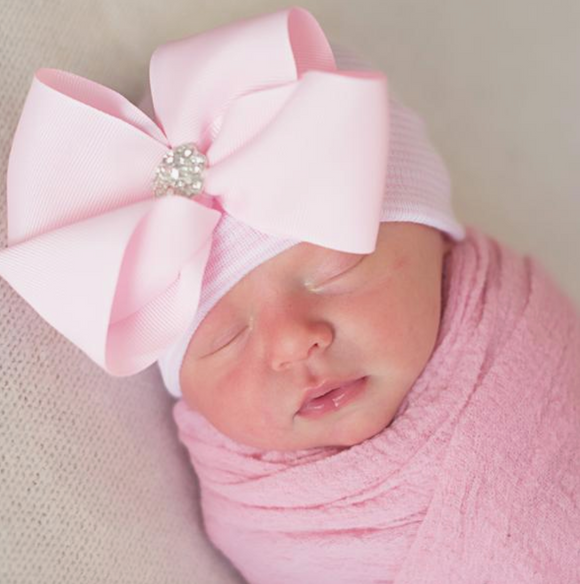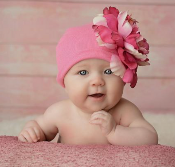 Newborn Hat with Pink Flower