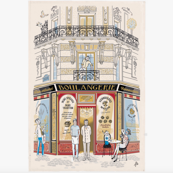 These tea towels celebrate Parisian shops: Boulangerie, Patisserie, Fromagerie and Bistrot. Give a vintage touch to your interior with these textiles that are decorative and functional. You will enjoy them on a hook in your kitchen, to wrap bread and to keep vegetables fresh longer. Detailed illustrations are hand-drawn and silk-printed to preserve the brightness of the colours. The inks are water-based and contain no solvents or phthalates. They guarantee very good resistance to washing, light and rubbing. 48 x 78 cm (18.8" x 30.7") 100% Cotton - heavyweight 220 gr/m2 qualitative fabric, Silk-printed. Made in France since 1892, based in Strasbourg.